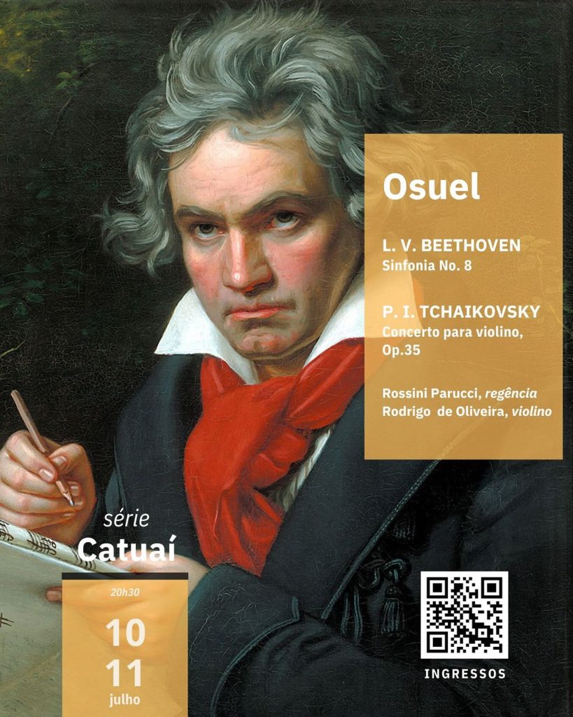 Além da obra de Tchaikovsky, o programa inclui a Sinfonia nº 8 de Ludwig van Beethoven, que abrirá o concerto. Composta em 1812, durante um período conturbado de sua vida pessoal – marcado por conflitos familiares, problemas de saúde e a misteriosa carta à “Amada Imortal” – a Oitava Sinfonia, no entanto, surpreende pelo tom leve e bem-humorado.