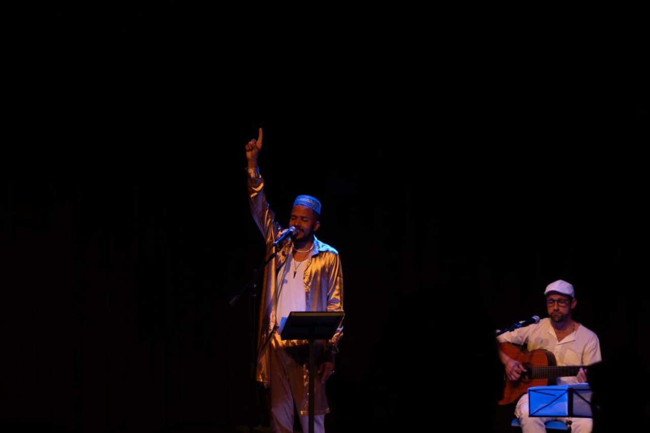 Daniel Montelles, é a voz que canta territórios e sua ancestralidade dando vida à sua matriz nordestina. Nascido no Maranhão e atualmente residindo em Curitiba, apresenta nesse trânsito territorial, suas inspirações poéticas e musicais da identidade do nosso povo, música, literatura, dos terreiros de mina aos de candomblé. O sarau “Tambor grande é poesia” traz para a cena poesias e músicas selecionadas pelo próprio intérprete. Ao todo serão executadas mais de 15 músicas e textos, a partir da síntese do que o artista tem composto e vivenciado ao longo de todo esse tempo em vivência de pesquisa, junto aos terreiros de Mina em São Luís e terreiros de Candomblé em Curitiba.