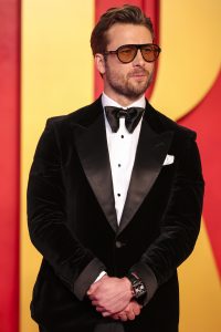 Os atores Matt Bomer e Glen Powell também selecionaram modelos da renomada relojoaria suíça para a cerimônia. Matt Bomer, mais conhecido por seus papéis no filme “Maestro” e na minissérie “Fellow Travellers”, escolheu um TAG Heuer Carrera de aço com mostrador preto.